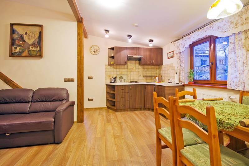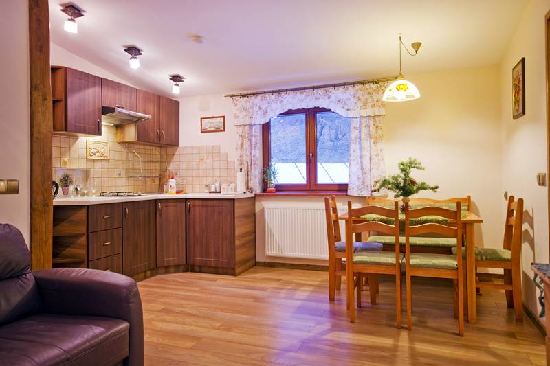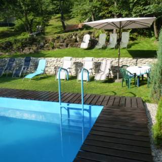 Oferujemy wygodne i przestronne pokoje 2-, 3- i 4-osobowe pokoje z łazienkami, TV-sat, internetem oraz komfortowy apartament. Ponadto oddajemy do Państwa dyspozycji: aneks kuchenny, basen letni, saunę fińską, grill, miejsce na ognisko, wielopoziomowy „magiczny” ogród, plac zabaw dla dzieci, dużą trampolinę, rowery górskie, kijki do nordic walking i inne atrakcje.